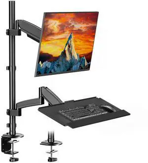 PUTORSEN Sit Stand Monitor Desk Mount for 17-32 inch Screens, Height Adjustable Full-Motion Articulating Arm with Keyboard Tray,19.8 lbs Monitor & 2.2lbs Tray Capacity, C-Clamp & Grommet Mount,Black