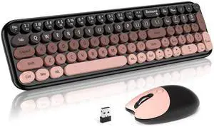 Wireless Keyboard Mouse Combo - Lovely Blackpink-Gradient Rainbow Full-Sized Typewriter Colorful Keyboards, Round Keycap Plug Play Retro Cute Keyboards for Windows, Laptop, PC, Desktop, Computer