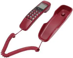 Caller ID Support Wall Corded Telephone, 16 Digit Display Screen, Oval Keys Wall Mounted Corded Phone, Red ABS Material Phone for Office