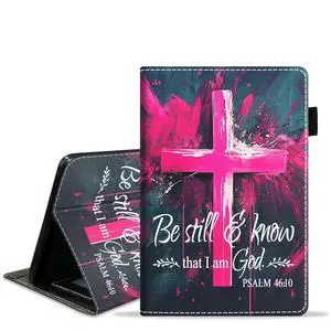 JDHJFBFJNP Case for Kindle Fire HD 10 & 10 Plus Tablet 10.1" (13th/11th Gen, 2023/2021 Release), PU Leather Stand Flip Cover with Card Slot & Pencil Holder, Holy Cross Bible Verse Psalm 46:10