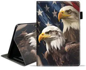 JDHJFBFJNP Case for Kindle Fire HD 10 Tablet 10.1 inch (9th/7th Generation, 2019/2017 Release) - PU Leather Stand Flip Cover with Card Slot & Pencil Holder, American Flag Bald Eagle
