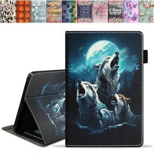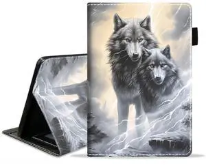 JDHJFBFJNP Case for Kindle Fire HD 10 Tablet 10.1 inch (9th/7th Generation, 2019/2017 Release) - PU Leather Stand Flip Cover with Card Slot & Pencil Holder, Wolf