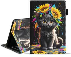 DHYYDSQZ Case for All-New Kindle Fire HD 10 & 10 Plus Tablet (13th/11th Generation, 2023/2021 Release) 10.1" PU Leather Slim Adjustable Stand Smart Cover with Auto Sleep/Wake, Cool Black Cat