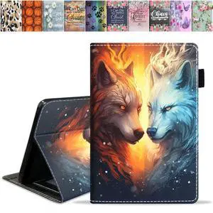 DEHJYYIJUY Case for Fire HD 8/Fire HD 8 Plus Tablet (12th/10th Generation, 2024/2022/2020 Release) - Slim PU Leather Folio Smart Cover with Auto Wake/Sleep, Ice Wolf and Fire Wolf