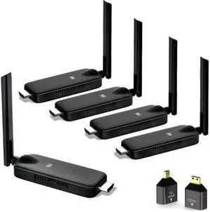 Wireless HD Transmitter and 4 Receiver Kit, up to 6 RXs, 4K 2.4G/5G 170FT Screen Mirroring and Extender Streaming Video Audio Files from Laptop PC TV Box Camera to Monitor Projector TV (1*TX+4*RX)