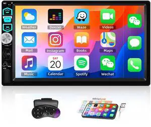 7 inch Touch Screen Double Din Car Stereo with Wired Mirror Link Bluetooth FM EQ Steering Wheel Control 7 Color Light