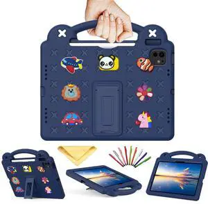 Kids Case Compatible with iPad A16 11th Generation 11Inch 2025, iPad 10th Generation 10.9Inch 2022,Full Body Shockproof Case with Pencil Holder,Adjustable Big Stand,Handle Strap