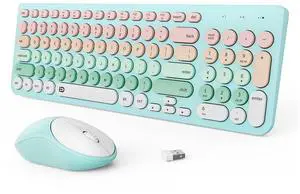 Wireless Keyboard and Mouse,Cute Retro Typewriter Computer Keyboard and Mouse Sets,Full Size 2.4G Cordless Colorful Round Keycaps Keyboard with Silent Mouse for PC Windows Laptop Office-Multi Green