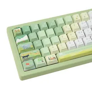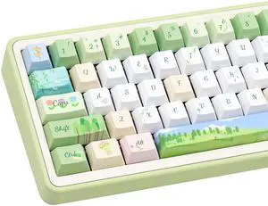 COOMICKEY 145 Keys Custom Forest Themed Cute Keycaps Dye Sub Keycaps Cherry Profile Anime Green White Keycaps Set Fit for Cherry Mx Switches Mechanical Keyboard