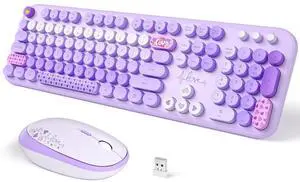 Wireless Keyboard and Mouse, SQMD Colorful Typewriter Retro Keyboard with Round Keycaps, 2.4GHz USB Full-Size Keyboard and Mouse Set for Mac PC Desktop Laptop (Purple Colorful)