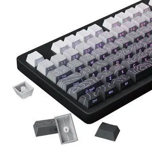 FunHub Shine Through PBT Keycaps - Black Double Shot Side Printed Backlit Keycaps Set 133 Keys 60% 65% 75% 100% Cherry Profile,Gradient Topographic Custom Key Caps for MX Switch Gaming Keyboards