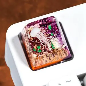 Jellyfish Artisan Keycap Purple Yellow Ocean R1 SA Profile Custom Sea Creature Keycaps 1U ESC Handmade Gaming Sea Resin Key Cap Cherry MX Switch Compatible Mechanical Keyboard Jellyfish Lover Gift