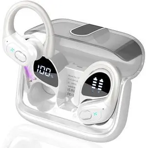 Bluetooth Headphones Wireless Earbuds, Digital Display Charging Case, Built-in Mic, Sleep Headphones, Noise Cancelling Headphones, Wireless Headphones Bluetooth, Headphones with Mic, Ear Buds (White)