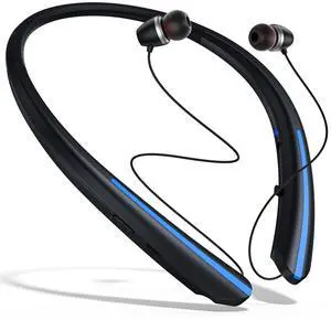 Bluetooth Headphones Retractable Neckband, Wireless Earbuds Bluetooth Headset with Microphone Vibration Call, Stereo Noise Cancelling Earphones (Black Blue)