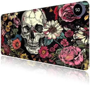 Heated Mouse Pad with 3 Levels Heated & 3 Hours Auto Shut-Off Mouse Pad for Warming Hands in Office Home, 23.6" x 14.2"Large Safe Desk Mat Hand WarmerSkull in Flowers