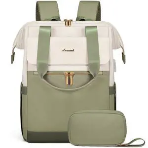 LOVEVOOK Laptop Backpack for Women, 15.6 Inch Work Laptop Bag with USB Port, Fashion Teacher Nurse Backpack Purse, Waterproof Travel Computer Backpack with Organizer Bag, 2PCS, Beige-Bean Green