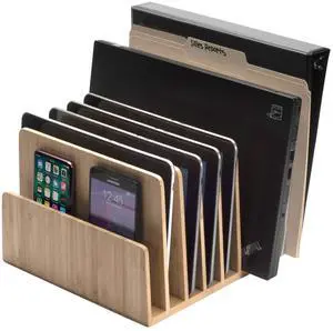 MobileVision Bamboo Device Organizer for Smartphones, Tablets and Laptops, 7 Slots With Extra Wide Slots for Laptops