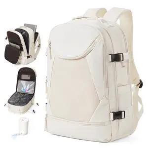 Vacuum Backpack Travel with Pump, Expandable Travel Backpack with Vacuum System, Vacuum Compression Bags Personal Item Carry On Suitcase Luggage Flight Approved Backpacks for Women Men, Beige