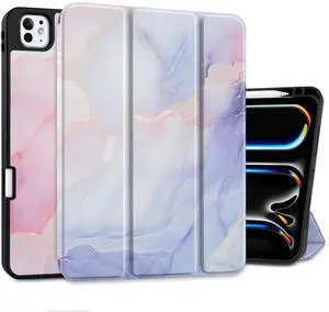 Yebiseven Case for M4 iPad Pro 11 inch 2024 Released Model A2836/A2837/A3006, Shockproof Tablet Case with Pencil Holder & Auto Wake/Sleep & Soft TPU Back Cover, Abstract Marble