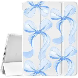 JOYLAND Light Blue Bow Case for iPad 10th Generation 10.9 inch/iPad (A16) 11th Generation 11 Inch 2025 with Pencil Holder,Trifold Stand Protective Cover with Soft TPU Back,White