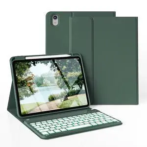 GKABXY Keyboard Case for iPad (A16) 11th Gen11 inch 2025 & iPad 10th Gen 10.9 inch 2022,7-Color Backlit Wireless Bluetooth Keyboard,Soft TPU Back Shell with Pencil Holder, Auto Sleep/Wake (Dark Green)