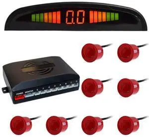 Riloer Car Front and Rear Security Reversing Radar Kit, LED Display Buzzer Alarm 8 Sensor Front and Rear Parking Sensor Prompt for Cars (Red)