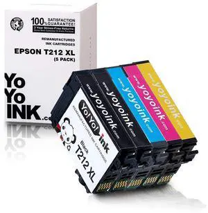 YoYoink 5-Pack Remanufactured Replacement for Epson 212XL Ink Cartridges for Epson Printer - Epson XP-4100 XP-4105 WF-2850 WF-2830 - Epson 212 Ink Cartridge Black Cyan Magenta Yellow
