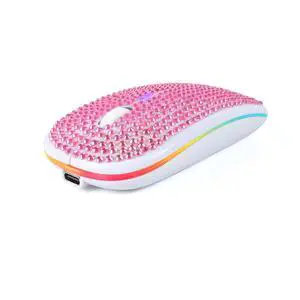 Rechargeable Bluetooth Wireless Mouse with Bling Crystal Rhinestones & 7-Color LED Lights - Silent Dual Mode Wireless Mouse for Laptops, PCs, and Macs - Perfect for Office, Travel & Home Use (Pink)