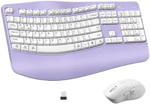 Ergonomic Wireless Keyboard and Mouse Combo, Wave Keys Keyboard with Wrist Rest for Natural Typing, 3 DPI Adjustable Ergonomic Silent Mouse for Computer/Laptop/Windows/Mac (Purple)