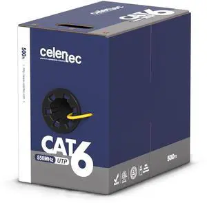 celertec CAT6 Outdoor Cable, 500ft, 23AWG Solid Bare Copper, Unshielded Twisted Pair (UTP), UV Resistant, Weatherproof, CMX, ETL Listed, 550MHz, Bulk Ethernet Cable, Wooden Spool- Black