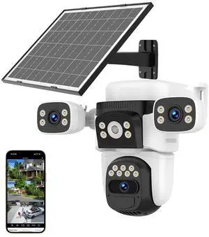 EVERSECU Solar Wireless Triple Lens WiFi PTZ Security Camera, Three Cameras in One, Side Cameras with Adjustable All-Angle Arm, 2K 360 View No Blind Spot, Auto Tracking, Spotlight, 2 Way Audio