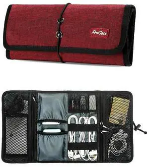 ProCase Electronic Organizer Cord Pouch, Travel Cable Charger Phone Accessories Bag Organizer Roll up Tech Carrying Case for USB Cables SD Memory Cards Earphone Flash Hard Drive -Red