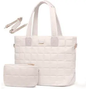 LOVEVOOK Tote Bag for Women, Large Puffer Work Tote Laptop Bag, Lightweight Travel Tote Bag with Zipper Gifts for Women
