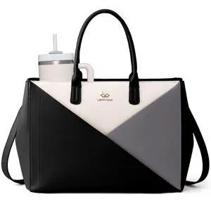 LOVEVOOK Laptop Tote Bag for Women Work, Teacher Tote Bag with Large Cup Holder, 15.6 Inch Waterproof Leather Computer Bag