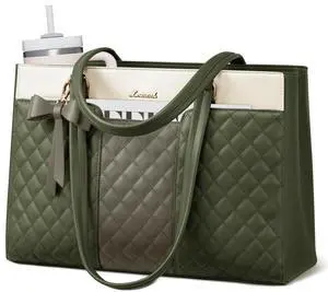LOVEVOOK Laptop Bag for Women,17.3Inch Work Teacher Bags Leather Tote Bag Briefcase Waterproof Computer Bag for WomenWhite and Green