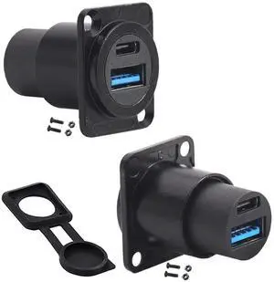 PENGLIN 2PCS Dual USB Panel Mount Adapter,USB-C 3.1 & USB 3.0 Female to Female Connector,USB A & Type C Feedthrough Bulkhead Socket for Car/Home/Industrial Use