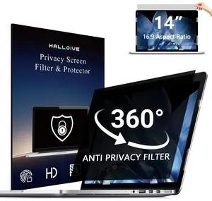 4-Way Laptop Privacy Screen Shield 14 Inch, Removable 16:9 Aspect 360 Privacy Filter Screen Protector for 14 Inch Laptop Computer, Anti Glare Blue Light Slide Mount Tabs Cover for Generic Laptop