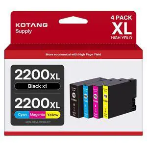 KOTANG 2200XL Ink Cartridges Replacement for Canon 2200 Ink Cartridges Compatible with Maxify MB5020 MB5120 MB5320 MB5420 iB4020 iB4120 Printer (Black, Cyan, Magenta, Yellow, 4 Pack)