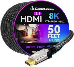 PowerBear 4K Long HDMI Cable 50 ft ^^ High Speed, Braided Nylon & Gold Connectors, 4K @ 60Hz, Ultra HD, 2K, 1080P, ARC & CL3 Rated ^^ for Laptop, Monitor, PS5, PS4, Xbox One, Fire TV, Apple TV