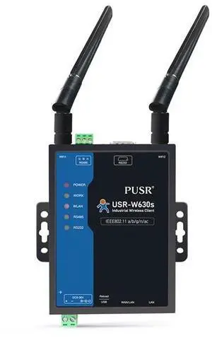 PUSR Industrial Grade Dual Band WIFi5 Wireless Client Modbus Gateway MQTT 2 Ethernet Ports Serial RS232 RS485 to WiFi Converter USR-W630s