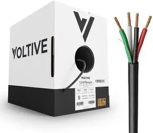 Voltive 12/4 Speaker Wire, Plenum CL3P, Black, 250ft - 12AWG, 4 Conductors, Stranded Oxygen-Free Copper, UL Listed - V-1241-1