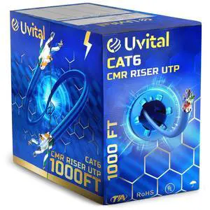 Uvital CAT6 Ethernet Cable 1000ft(CMR Riser), Blue UTP 23AWG 100% Solid Copper Bulk Network Cable ^^ Unshielded, 4-Pair ^^ 550MHz, 10 Gigabit, PoE++ ^^ Home, Office