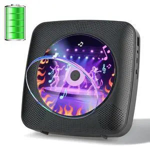 Gueray CD Player Portable with Bluetooth Wall Mountable, 1800mAh Rechargeable Battery Operated CD Music Players for Home Desk Built-in HiFi Speaker LCD Screen Display FM Radio Supports USB AUX Jack