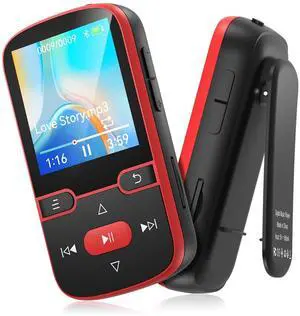 64GB MP3 Player Bluetooth 5.3 with Clip, HiFi Sport Music Player, 1.5 Inch Screen MP3 Player for Kids with Physical Buttons, FM Radio/Pedometer/Voice Recorder, Weighs Only 28g, TF Card Up to 128G(Red)