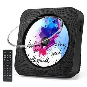 Portable CD Player with Bluetooth, Wall Mountable CD Player with Dust Cover,FM Radio,Built-in Speakers,USB Port,AUX Input,LCD Display