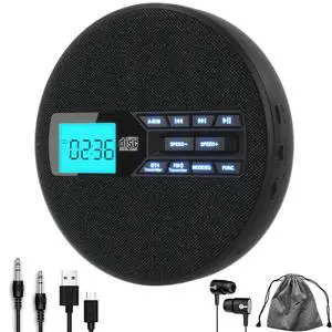M-Amazup CD Player Portable, Rechargeable Portable CD Player with Dual Speakers and Anti Skip,CD,Dual Bluetooth,FM Transmission,USB,AUX,LCD Display,Backlit Button,Repeat,10 Speeds,Fabric Black