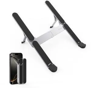 SODI [Innovative Compact] Foldable Laptop Stand for Desk, Lightweight Portable Laptop Stand for Business Trip, Library, Cafe, 6 Level Height Ergonomic Aluminum Computer Stand for MacBook 10-16"