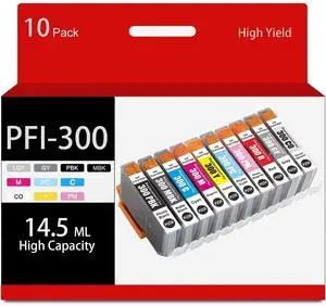 Compatible for Canon PFI-300 MBK PBK C M Y PM PC R GY CO Ink Cartridges 10-Pack High Capacity Replacement for Canon ImagePROGRAF PRO-300 Printer