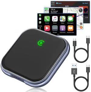 Wireless CarPlay Adapter for iPhone iOS 10+, Aluminum Frame + Tempered Glass, Converts Wired CarPlay to Wireless, Plug & Play Auto Connect, OTA Update, Fits Cars with Wired CarPlay