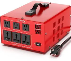6000W Heavy Duty Voltage Converter Transformer Step Up 110V to 220V & Step Down 220V to 110V, Auto Input Recognition, 3 US & 3 Universal Outlets, LCD Display, Circuit Breaker for Travel & Home